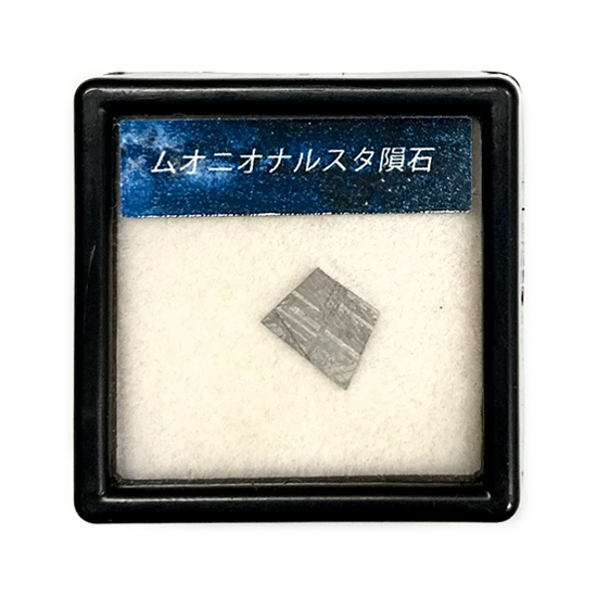 ここにご紹介しますムオニオナルスタ隕石は、小さい片ながらも幾何学模様でありますウィドマンシュテッテン構造がきれいに出ており、しかも2つと同じ模様がありません。