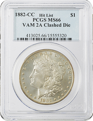 1882年CC 1ドル モルガン銀貨 MS66 VAM 2A Clashed Die Hit List